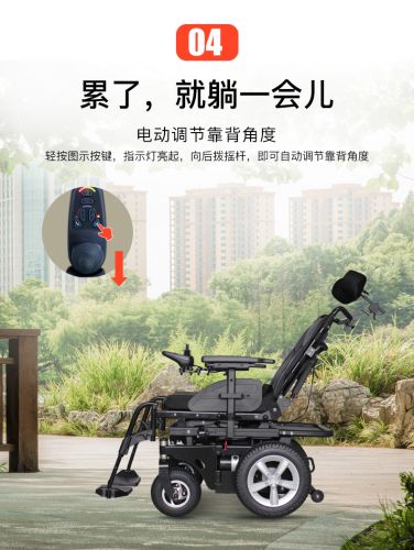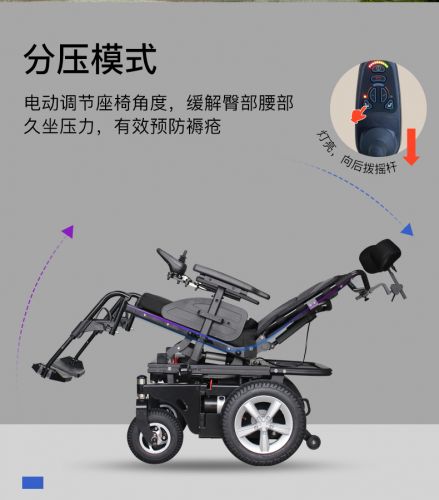 全功能減壓越野輪椅 靠背多角度調(diào)節(jié),車身可后仰,舒適減壓,有限預防褥瘡 LED前燈,酷炫后尾燈 標配人機工程學頭枕,多處可調(diào)節(jié) 前后越野充氣輪胎,舒適減震 后置置物架,承重50公斤,可放制氧機等設備