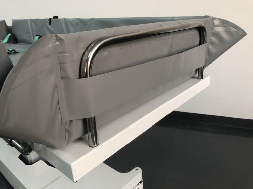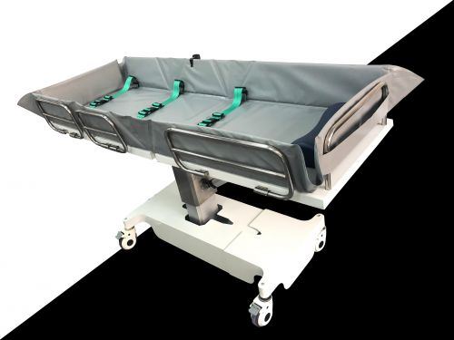 床體電動三折折疊,電動整體獨立升降調(diào)節(jié),靠背、腿部各自獨立電動調(diào)節(jié) 可攤開可收縮折疊行走,便于狹小走廊行走及狹小空間洗浴等電機功率3*6000-8000N,全部鋰電池24V安全電壓供電,防護等級:IP54。 配備舒適安全帶,保護在洗浴及轉(zhuǎn)運是浴者安全。 靠背、腿部可根據(jù)浴者舒適度隨意0°--80°調(diào)節(jié)。 護工操作簡單,調(diào)節(jié)到浴者舒適體位。