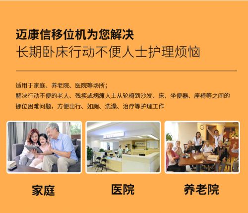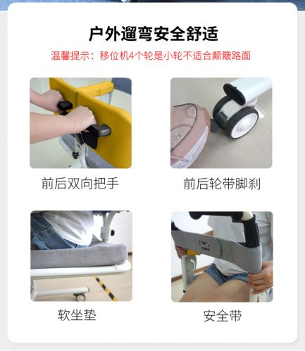 多功能移位機(jī)——有效解決了行動(dòng)不便人士在沙發(fā)、床、坐便器、座椅等之間相互移位的痛點(diǎn),以提高行動(dòng)不便人士的生活質(zhì)量。護(hù)理人員通過(guò)使用移位機(jī)可以大大減輕了工作強(qiáng)度,提高了護(hù)理效率,項(xiàng)目產(chǎn)品可以解放勞動(dòng)力或者減輕護(hù)理人員的負(fù)擔(dān)。