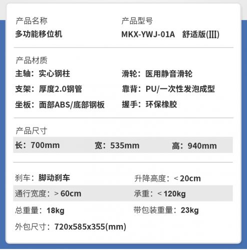 多功能移位機——有效解決了行動不便人士在沙發(fā)、床、坐便器、座椅等之間相互移位的痛點,以提高行動不便人士的生活質量。護理人員通過使用移位機可以大大減輕了工作強度,提高了護理效率,項目產(chǎn)品可以解放勞動力或者減輕護理人員的負擔。