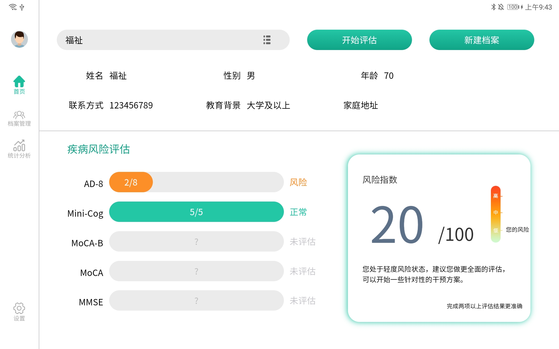 智能認(rèn)知評估與管理系統(tǒng)依托移動互聯(lián)網(wǎng),采用臨床神經(jīng)醫(yī)學(xué)、認(rèn)知科學(xué)、數(shù)據(jù)分析科學(xué)和康復(fù)醫(yī)學(xué)相結(jié)合的方式,研究早期老年癡呆癥的精準(zhǔn)評估技術(shù)和個(gè)性化康復(fù)干預(yù)方案。軟硬件結(jié)合開發(fā)出一套電子化、智能化的老年癡呆癥評估和干預(yù)服務(wù)應(yīng)用,能夠在醫(yī)院和醫(yī)院之前的家庭和社區(qū)完成早期老年癡呆癥篩查評估,從而更早期介入干預(yù),預(yù)防和延緩老年癡呆癥的發(fā)展。