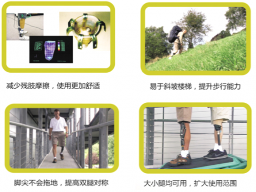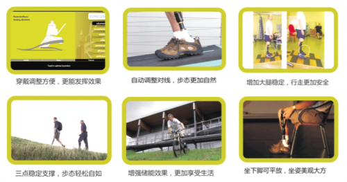 "液壓踝和分趾碳纖腳相結(jié)合,實(shí)現(xiàn)仿生踝功能的同時(shí)可以提供儲(chǔ)能效果; 恩德萊獨(dú)有的足弓系統(tǒng)TM觸地漸變專利,讓腳底滾動(dòng)和承重感接近自然, 減少行走時(shí)腳底受力斷層和瞬間變形感覺,從而提高產(chǎn)品的行走自信心,減少體能消耗; 獨(dú)立控制背屈和跖屈,仿生設(shè)計(jì)模仿自然踝部動(dòng)作,適應(yīng)不同復(fù)雜路況,舒適省力,調(diào)節(jié)接受腔內(nèi)應(yīng)力; 防跘到模式技術(shù),腳尖離地抬起實(shí)現(xiàn)無障礙,增強(qiáng)安全性能; 座姿狀態(tài)腳板自動(dòng)歸位;"