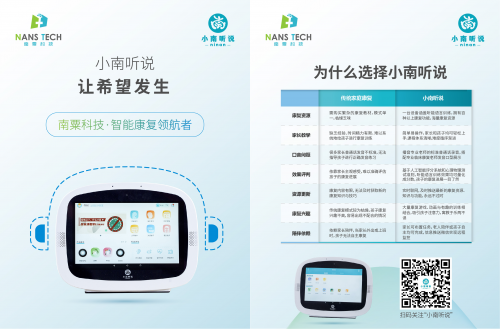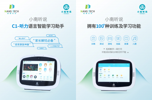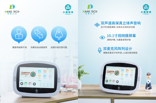 小南聽說-聽力語言智能康復(fù)助手,是首款覆蓋家庭場景和機(jī)構(gòu)個訓(xùn)場景,面向患有聽力、言語語言障礙兒童及青少年的智能化康復(fù)訓(xùn)練設(shè)備。它具有功能強(qiáng)大、操作簡單、趣味性強(qiáng)、內(nèi)容豐富等特點(diǎn),是家長與康復(fù)老師的得力助手。該產(chǎn)品經(jīng)過國內(nèi)多家專業(yè)康復(fù)機(jī)構(gòu)驗(yàn)證,已成為很多老師的日常教學(xué)神器,還可作為早教機(jī)與智能學(xué)習(xí)機(jī)實(shí)現(xiàn)一機(jī)多用,滿足家長全方位的需求。該產(chǎn)品已于今年7月上市,現(xiàn)誠邀各地經(jīng)銷商垂詢合作。