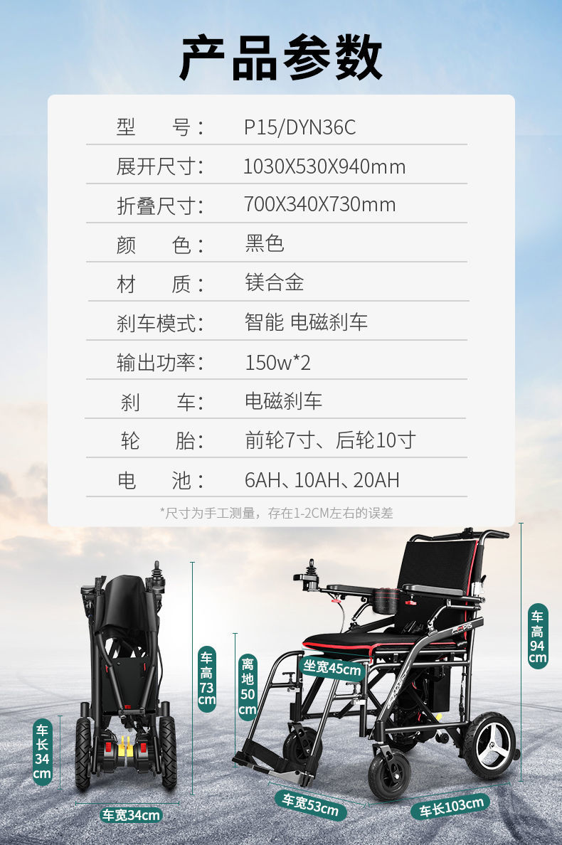智能黑科技產品 1、鎂合金框架+稀土永磁電機 2、進口LG鋰電芯 可帶上飛機 3、兩秒可折疊 凈重15kg單手可提 4、電磁剎車 松手即停 5、英國PG/Micon控制器 6、與美國PRIDE同平臺生產