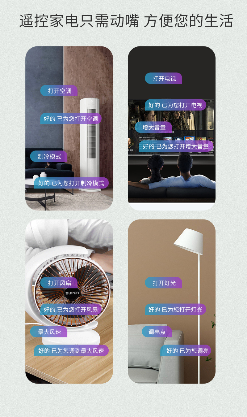 全屋智能整體方案主要是為本地全屋智能化建設(shè)而打造,可以實(shí)現(xiàn)語音交互控制燈光、窗簾、空調(diào)、電視及風(fēng)扇等功能。核心采用的本地語音網(wǎng)關(guān)在具備全新智能化控制的同時(shí)兼容傳統(tǒng)家電的交互控制,整套方案簡單易用,無需聯(lián)網(wǎng),即插即用,安全可靠,可輕松實(shí)現(xiàn)全屋遠(yuǎn)程智能語音控制。此方案非常適用于全屋智能與智慧酒店建設(shè),以及適老化及無障礙改造等應(yīng)用場景。