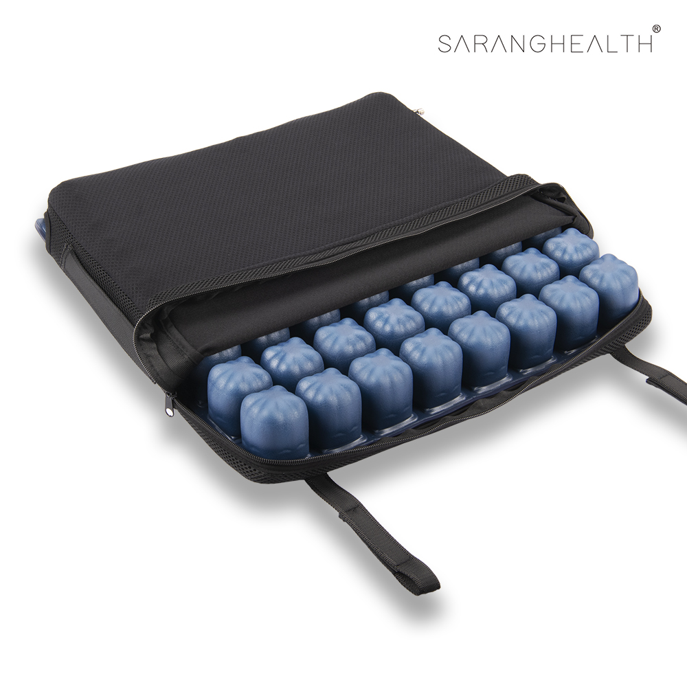 充氣防壓瘡墊選用無毒環(huán)保的PVC原料制成,散熱槽式分散結(jié)構(gòu)設(shè)計(jì),可減少熱量的積聚。根據(jù)人體臀部自然輪廓需求調(diào)節(jié)氣閥,幫助減輕坐骨、尾骨區(qū)域肌肉及血管所受到的壓力,使血液得到充分循環(huán),最大限度地降低和減少剪切力和摩擦力,適合長期坐輪椅的人士使用,有效預(yù)防肌肉組織壓瘡損傷的發(fā)生。