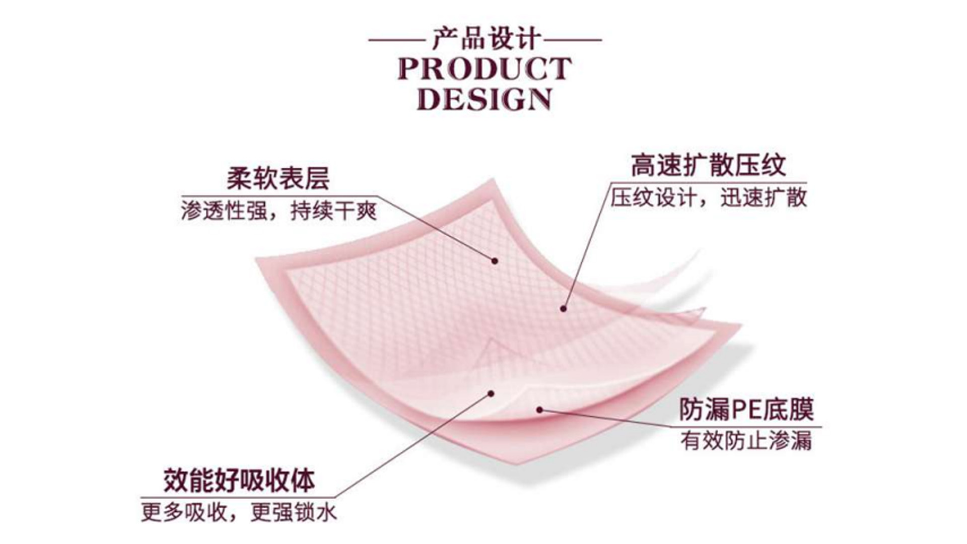 采用優(yōu)質(zhì)親水性無紡布,觸感柔軟舒適,滲透性強(qiáng),干爽性好。 采用美國原廠優(yōu)質(zhì)絨毛原漿,富含高鎖水性能的SPA,更高吸收量、更強(qiáng)鎖水性。 網(wǎng)狀菱形壓紋導(dǎo)流設(shè)計(jì),液體擴(kuò)散迅速,維持,維持表層的干爽。 有效防止?jié)B漏,減少床單,被褥的換洗次數(shù)。