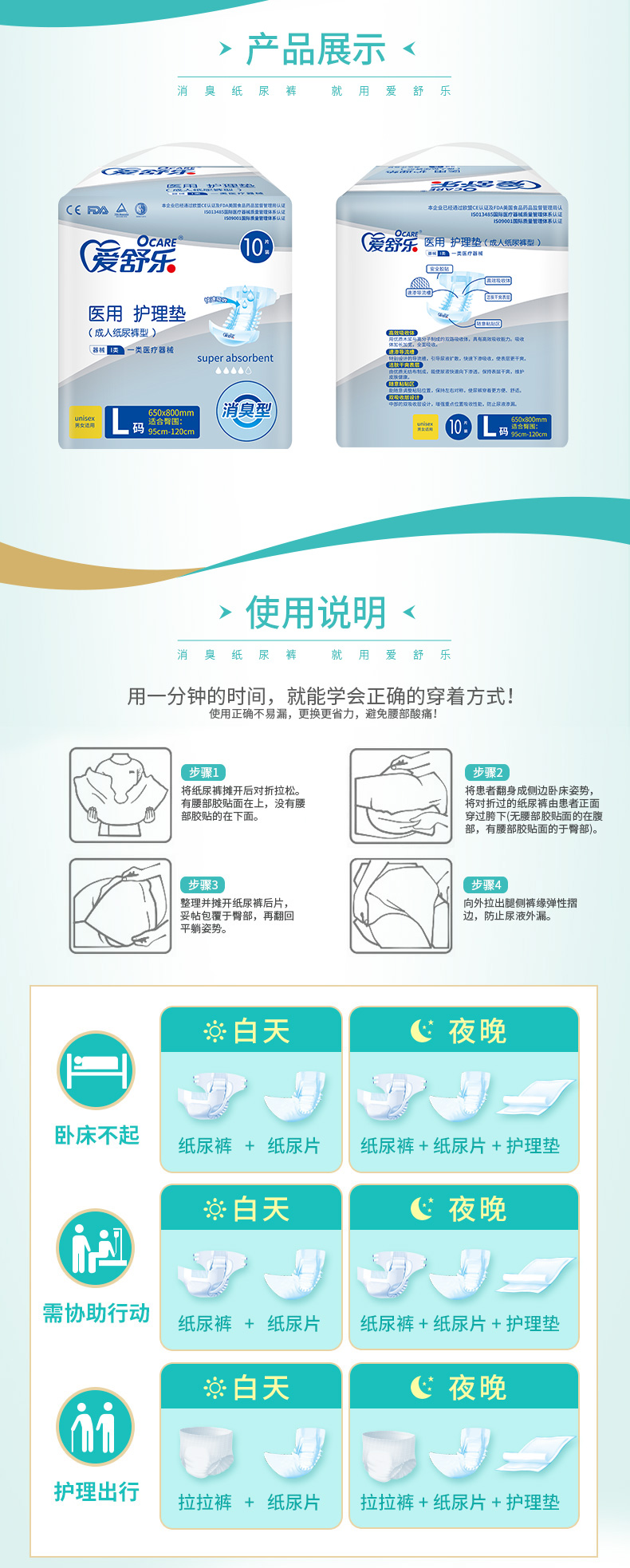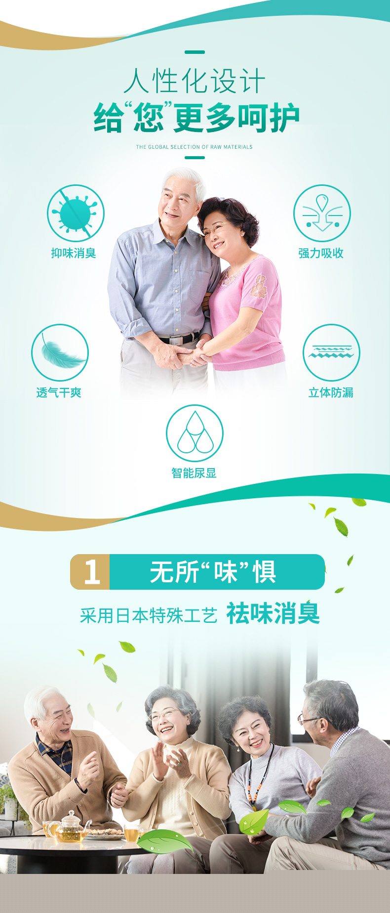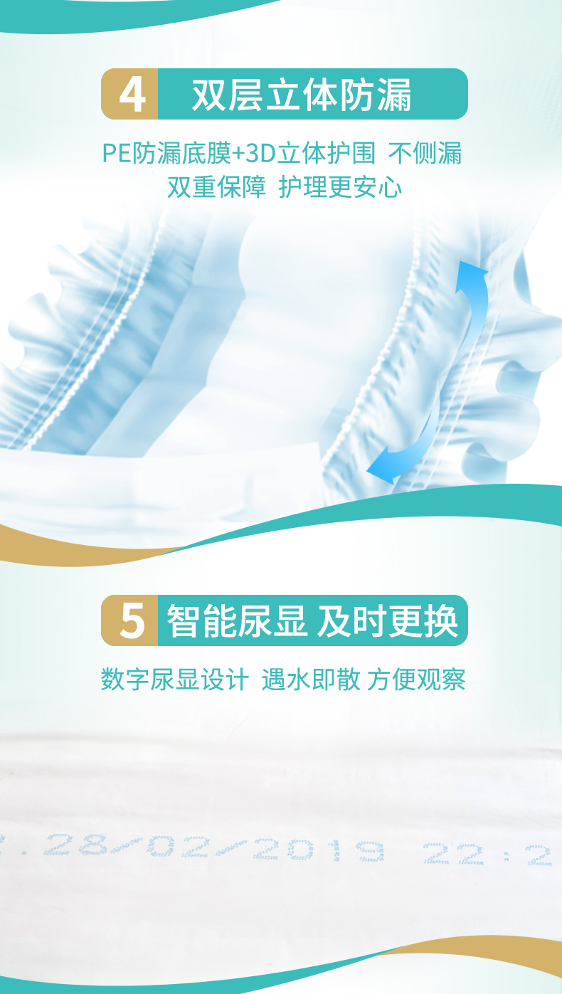 獨創(chuàng)“活護”消臭技術(shù),根除異味,舒適新凈界; 加長加寬吸收面+倍效吸收高分子,大吸量告別高頻更換 絲柔無紡布,漏斗式導流層,時刻干爽不反滲 立體護圍,安心防漏,翻身平躺從無壓力