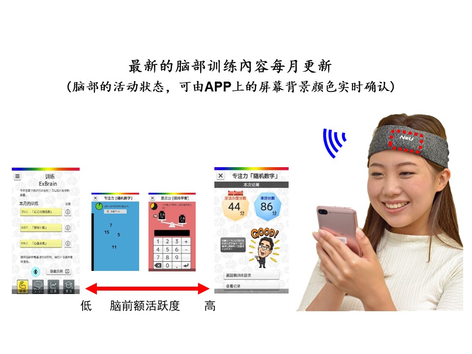 活用日立集團(tuán)特有的腦檢測(cè)可視化技術(shù),開發(fā)的超小型大腦活躍度檢測(cè)器,另結(jié)合日本國立東北大學(xué)老齡化研究所所長川島隆太教授的認(rèn)知功能訓(xùn)練方案,在實(shí)時(shí)生物反饋的機(jī)制下,一邊訓(xùn)練一邊檢測(cè),為用戶提供更高效,更便捷的大腦認(rèn)知功能訓(xùn)練方案。