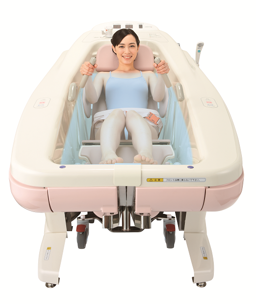 采用護理人員和洗浴者面對面的方式,能夠確認洗浴者全身的狀況使洗浴服務更加安全。專用輪椅為一體結構,連接浴缸時聲音小,震動輕,且能夠與浴缸流暢連接。操作部分集中在隨手就能夠到的位置。“洗浴時間”“水溫”等一目了然??墒箤S幂喴纬势教蔂顟B(tài), 即便是一個護理人員也可為洗浴者 進行臀部清洗服務。適用于半失能老人。