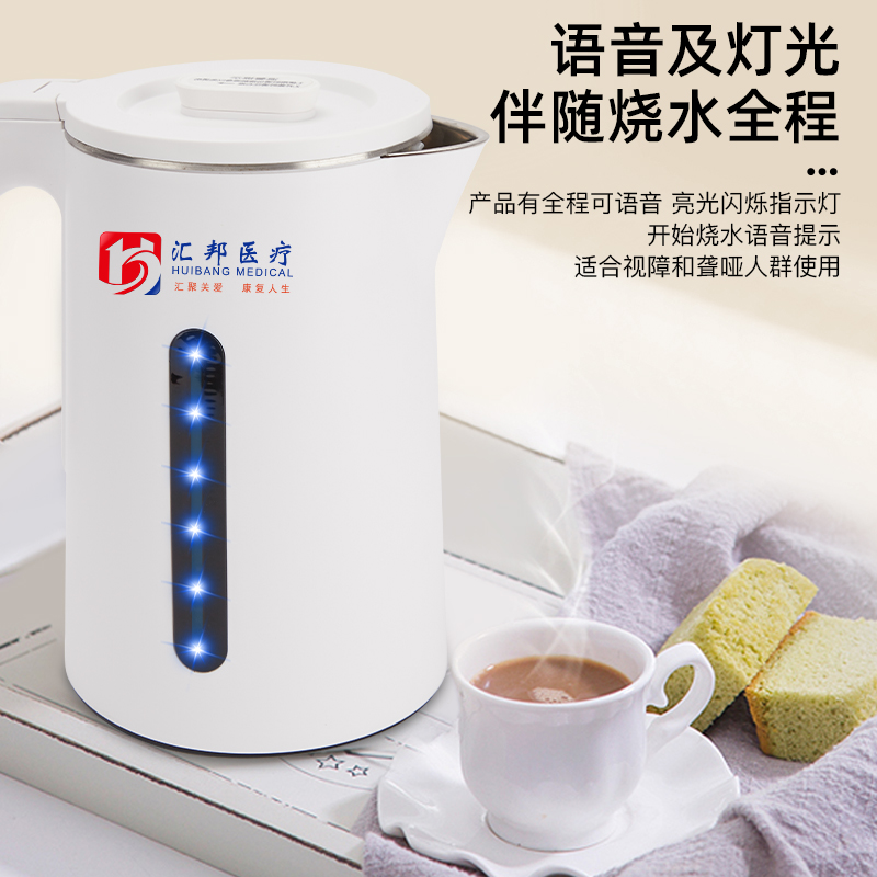 產(chǎn)品由壺身主機(jī)和底盤組成;額定功率:不低于1500W 電壓220V 額定頻率50-60HZ 容量:2L;產(chǎn)品材質(zhì)內(nèi)膽由食品級(jí)不銹鋼一體成型,蓋子由304食品級(jí)不銹鋼,外殼全新PP料無(wú)毒 無(wú)異味,質(zhì)感好表面光滑;產(chǎn)品有全程可語(yǔ)音 亮光閃爍指示燈,開始燒水語(yǔ)音提示;產(chǎn)品獨(dú)立開關(guān)上面有開關(guān),簡(jiǎn)單易操作 一鍵操控;水壺主體采用雙層防燙設(shè)計(jì),適合視障人士使用,使用更安全;
