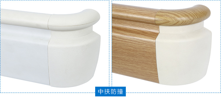 抗菌防撞扶手由抗菌PVC面板、優(yōu)質鋁合金內襯、彎頭、支撐架等組成;設計符合人體力學的要求,手握時有舒適感;表面PVC面板采用高分子抗菌材料,有防滑紋路,可抗菌、防污、不易變色,便于清潔,具有抗菌性、阻燃性、耐寒性等特性,產(chǎn)品經(jīng)國家權威機構檢驗合格;整體色澤均勻,無明顯色差;扶手內襯鋁型材,采用優(yōu)質的鋁錠擠出成型,有堅固和防撞效果;扶手在每個轉角處有陰陽角連接配合,可使扶手的美觀無縫連接及保護墻面。