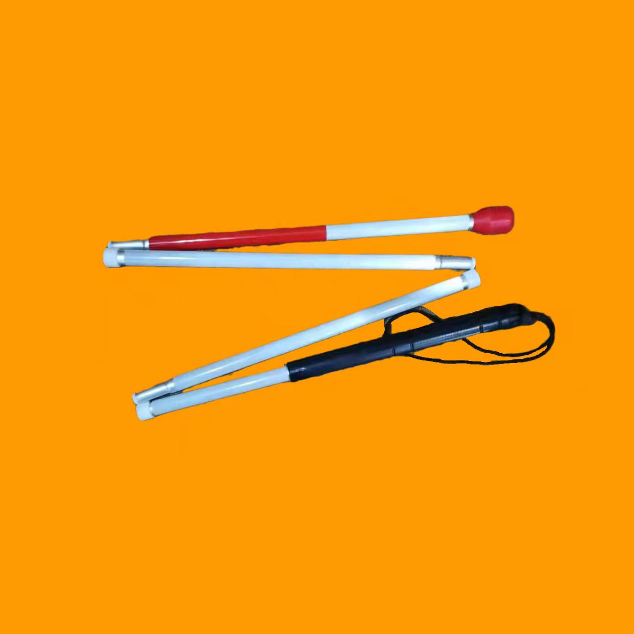 1)手柄結(jié)構(gòu)設(shè)計適合盲杖使用中多種正確握持,手柄上端裝有彈性腕帶,不易從手中滑落;2)折疊連接部件連接牢固,具有防松動裝置;3)四節(jié)折疊,折疊和打開及使用安全,無卡滯現(xiàn)象。適用于一/二級盲和全盲人群。