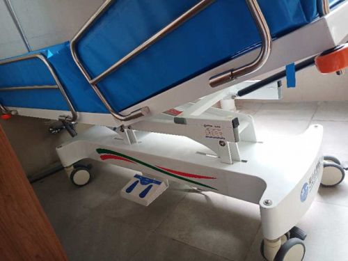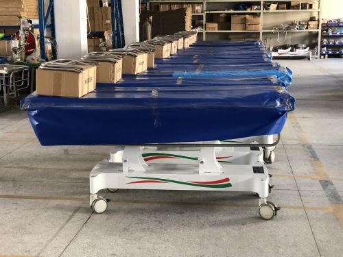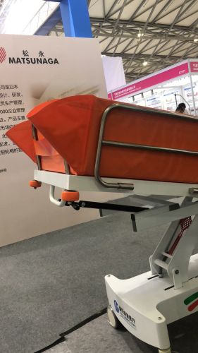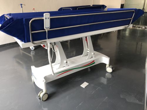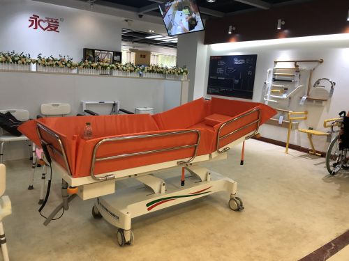 1.將沐浴推床推到與病床并排平行后(間隙應(yīng)小于5CM)將沐浴推床塔升降至與病床同一高度,打開與病床靠靠攏一側(cè)護(hù)欄,將浴槽護(hù)欄部部份平鋪于病床上,老人側(cè)身,將過床器放到老人身后準(zhǔn)備過床。 2.鎖住沐浴推床四輪剎車防止移動,將老人利用過床器移到與沐浴推床平行。 3.讓老人兩手左手交疊于胸前,雙腳交疊,護(hù)理員一手扶住老人肩部,一手扶住臀部輕推老人完成過床。 4.過床完畢,松開四輪剎車,護(hù)欄調(diào)至立起