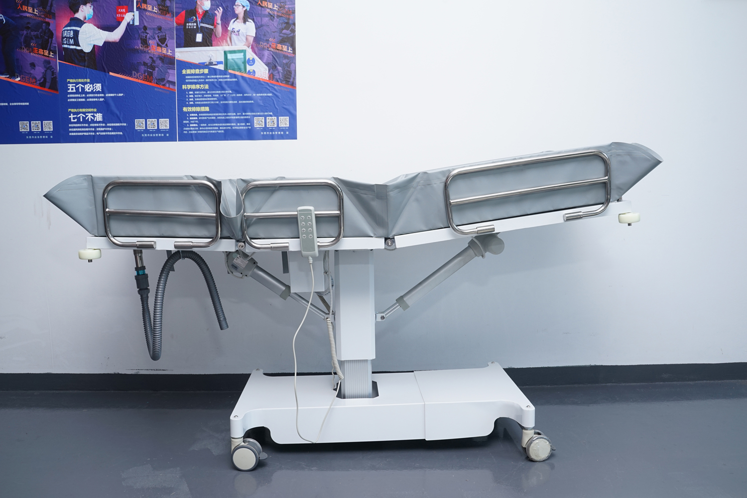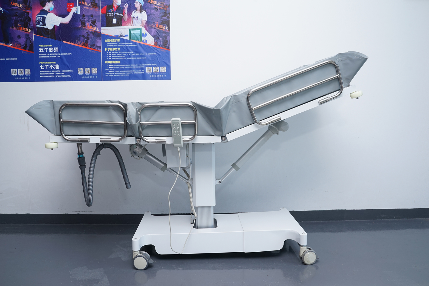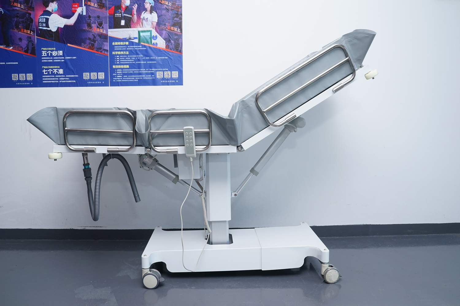 床體電動三折折疊,電動整體獨立升降調(diào)節(jié),靠背、腿部各自獨立電動調(diào)節(jié) 可攤開可收縮折疊行走,便于狹小走廊行走及狹小空間洗浴等 電機功率3*6000-8000N,全部鋰電池24V安全電壓供電,防護等級:IP54。 配備舒適安全帶,保護在洗浴及轉(zhuǎn)運是浴者安全。 靠背、腿部可根據(jù)浴者舒適度隨意0°--80°調(diào)節(jié)。 護工操作簡單,調(diào)節(jié)到浴者舒適體位。 框 架:冷板、冷管;
