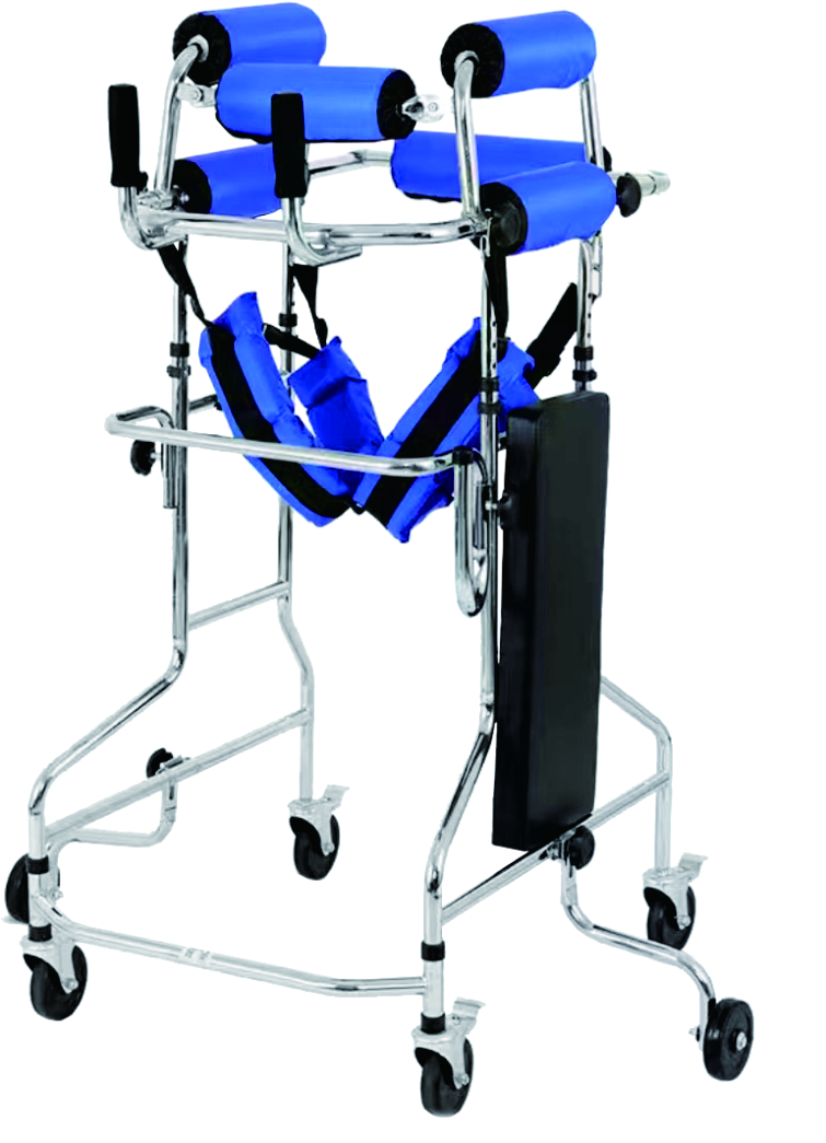 站立架是一種通過(guò)固定腰部和臀部,幫助使用者保持直立姿勢(shì)的康復(fù)醫(yī)療訓(xùn)練器械,可先讓使用者在他人的幫助下由坐位變?yōu)檎玖⑽?,加?qiáng)下肢力量,防止關(guān)節(jié)變形,肌肉萎縮。
