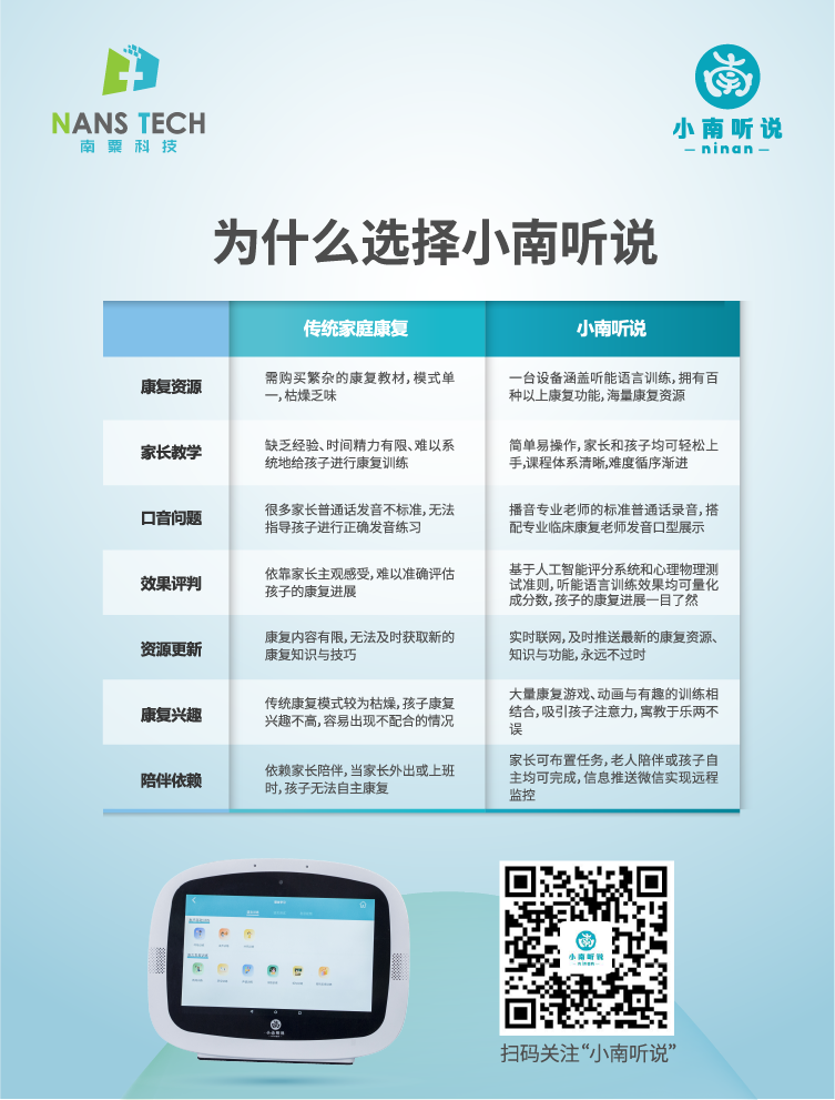 小南聽說聽力語言智能康復(fù)助手是一款基于人工智能和數(shù)字康復(fù)技術(shù)的語言康復(fù)產(chǎn)品,主要面向各類語言、認(rèn)知及聽力障礙的兒童,由一套智能訓(xùn)練系統(tǒng)和一套智能硬件設(shè)備組成,目前主要有專業(yè)版和智享版兩種硬件形態(tài),可實(shí)現(xiàn)智能化的家庭/機(jī)構(gòu)全方位康復(fù)訓(xùn)練。該產(chǎn)品在上市后獲得數(shù)千萬家長(zhǎng)認(rèn)可,現(xiàn)誠(chéng)邀各地經(jīng)銷商垂詢合作。