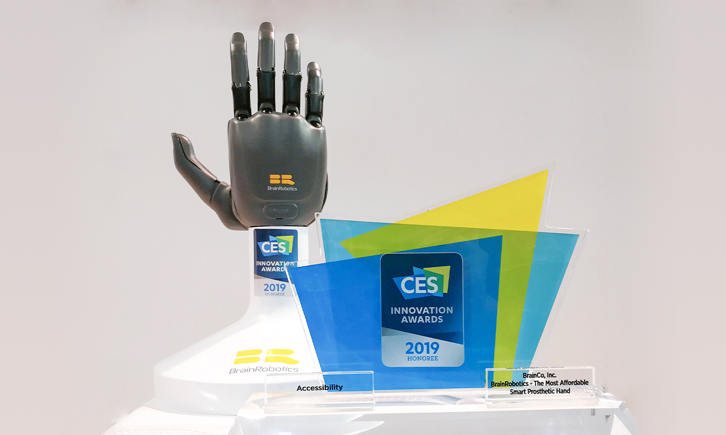 BrainRobotics智能仿生手,是一款腦機(jī)接口技術(shù)與人工智能算法高度整合的智能產(chǎn)品。這款仿生手可通過檢測佩戴者的神經(jīng)電和肌肉電信號(hào),識(shí)別佩戴者的運(yùn)動(dòng)意圖,并將運(yùn)動(dòng)意圖轉(zhuǎn)化為智能仿生手的動(dòng)作,從而做到靈巧智能,手隨心動(dòng)。