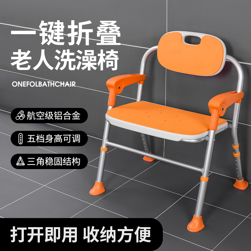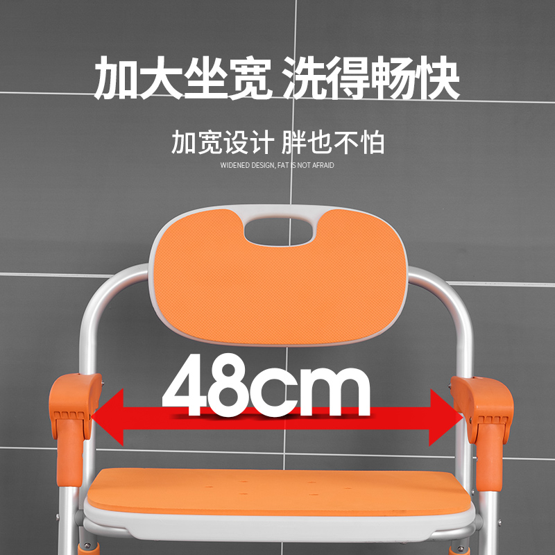 一鍵折疊老人洗澡椅,48cm加大座寬,坐著洗澡更舒適