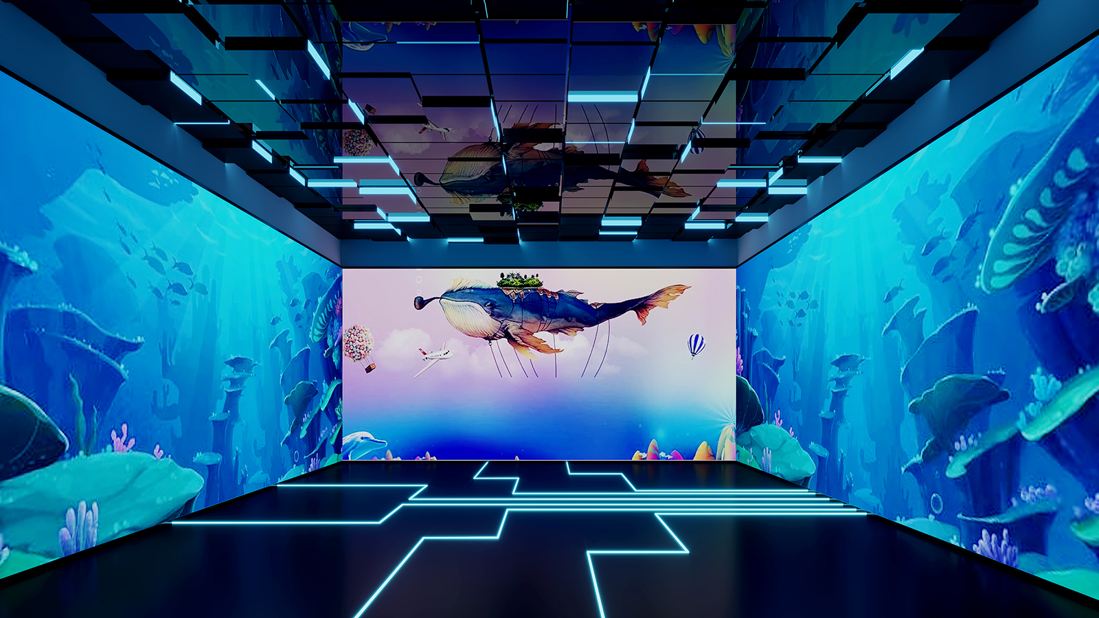 三維沉浸式情景互動教室,采用先進(jìn)的聲光電多媒體技術(shù),將一間教室打造成一個虛擬的三維立體沉浸式情景教室,教室的場景可以根據(jù)融合投影進(jìn)行切換,可以是街道,景區(qū),也可以是廚房,臥室;還可以是自然的森林或者多彩的海底世界;體驗(yàn)者沉浸其中,還可以進(jìn)行各種虛擬而又真實(shí)的互動體驗(yàn);讓特殊兒童更真實(shí)地體驗(yàn)社會,體驗(yàn)真實(shí)的生活環(huán)境,感受美麗的外部世界;同時也針對特殊兒童視聽覺、觸覺等各項(xiàng)感官能力進(jìn)行綜合訓(xùn)練提高。