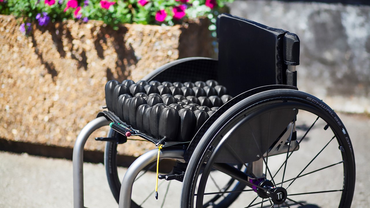 ROHO可調(diào)體式型坐墊配有ISOFLO專利記憶控制閥 當(dāng)閥門打開,即綠色推入時,所有氣囊相互連通,此時可以漸進(jìn)調(diào)整坐姿,或充氣或放氣 當(dāng)坐姿調(diào)整完畢,關(guān)閉閥門,即將紅色推入時,坐墊分為四個獨(dú)立分區(qū),分區(qū)內(nèi)氣囊聯(lián)通,而四個分區(qū)之間互相獨(dú)立,以提升用戶在坐姿狀態(tài)下的穩(wěn)定性 ROHO可調(diào)體式型坐墊上分布有三種氣囊高度,預(yù)設(shè)的不同氣囊高度分布,使得ROHO可調(diào)體式坐墊具有更出色的擺位功能