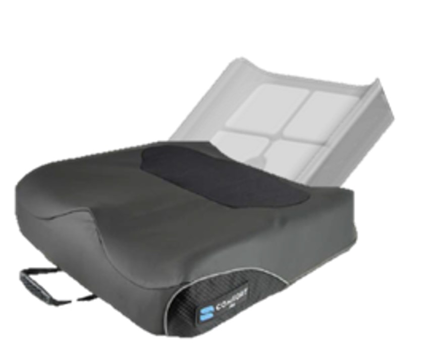 腿部凹陷區(qū),幫助坐姿正直; 兩側(cè)泡棉前窄后寬,以穩(wěn)定大轉(zhuǎn)子; 雙層泡棉,基底泡棉提供廓形支撐,上層記憶棉提供舒適及皮膚保護(hù); 坐墊底部采用防滑材質(zhì),并附有魔術(shù)貼,使坐墊固定于座椅上; 坐墊套四周為穩(wěn)定區(qū),骶尾部具有低剪切力區(qū)域 坐墊材質(zhì):聚丙烯泡棉+凝膠
