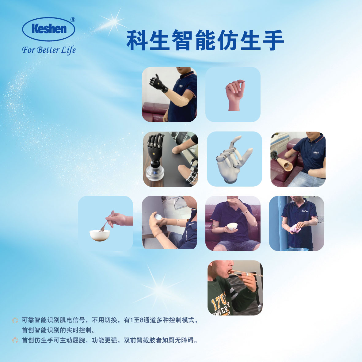 ◎可靠智能識別肌電信號,不用切換,有1至8通道多種控制模式。◎創(chuàng)新的智能識別的實時控制創(chuàng)新仿生手可主動屈腕,功能更強,雙前臂截肢者如廁無隨礙。◎手形高度仿真,有不同尺寸和5-8自由度可選,還可選擇不同膚色,小號可匹配女士?!虬惭b方法與普通肌電手相同,非常簡單,容易維護。◎戴上仿真手套活動自如,外形更佳,還可以防水。