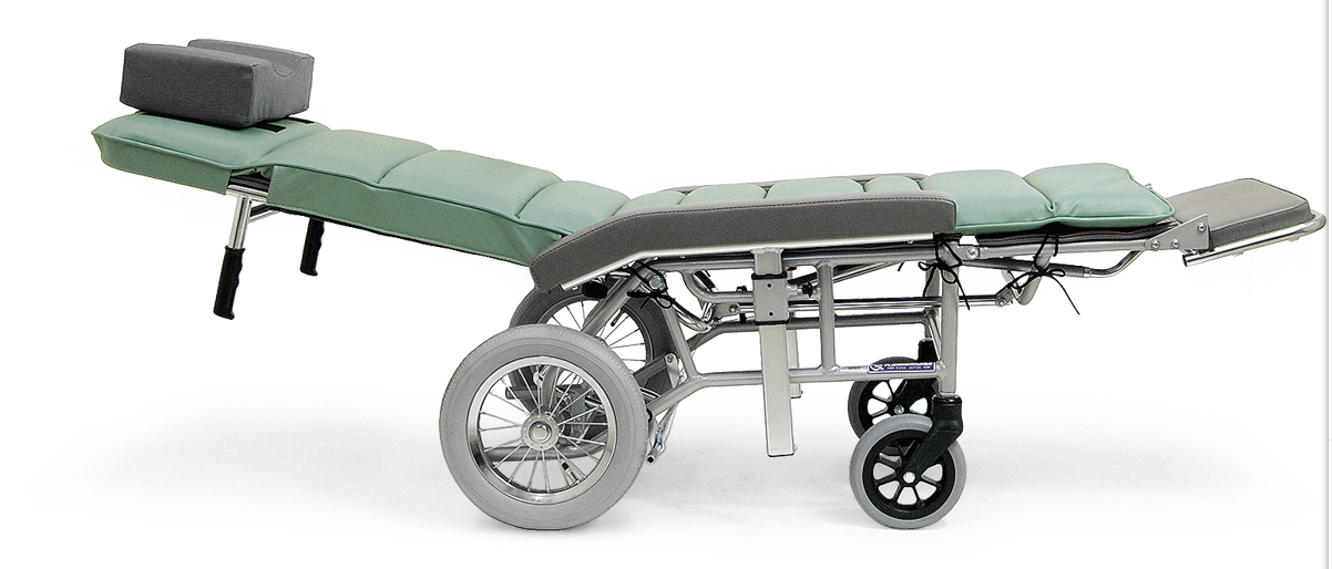 自由躺靠式輪椅,背部和腳部連動(dòng)構(gòu)成自由躺靠型輪椅,可作為簡(jiǎn)易活動(dòng)床使用。