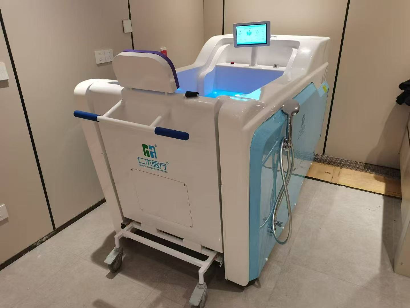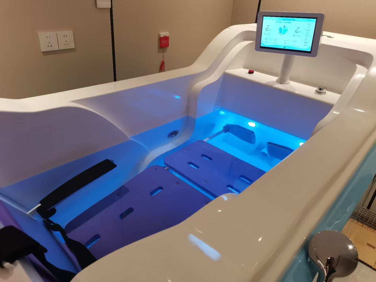 無障礙輪椅式浴槽采用304不銹鋼骨架和高質(zhì)量玻璃鋼外殼,材質(zhì)安全無刺激,適合行動不便者使用。浴槽配備渦流、氣泡噴嘴、肩部噴淋,促進血液循環(huán)和緩解肌肉疲勞。輪椅可直接進入浴槽,減輕護理負擔。設(shè)備自動調(diào)節(jié)水溫,確保舒適體驗。配有臭氧紫外線雙重消毒系統(tǒng)。內(nèi)置光療及音療,提升康復效果。輪椅設(shè)計符合人體工學,且確保安全穩(wěn)定。CE認證、列入國家康復輔具目錄、符合最新國標要求,醫(yī)院、養(yǎng)老院、社區(qū)及家庭皆適用。