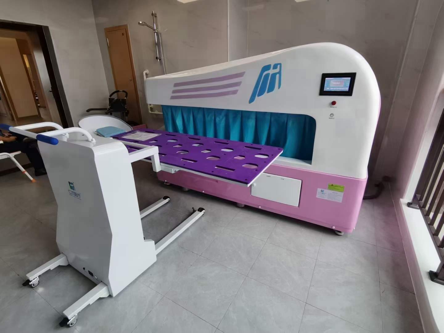 無障礙老人助浴洗澡機該設(shè)備具有洗浴及按摩功能。設(shè)備利用側(cè)進式,方便護理人員使用,并且節(jié)約使用空間。具備一鍵式洗浴功能,操作簡單,也可根據(jù)洗浴者的需求自主調(diào)節(jié)洗浴方式,設(shè)備自帶沐浴露噴灑。艙內(nèi)利用水柱沖擊按摩能有效促進機體的新陳代謝,舒緩緊繃的肌肉,促進血管擴張及血液循環(huán),緩解精神壓力,舒緩緊張的關(guān)節(jié),改善頸、肩、腰椎、腿的慢性疼痛。符合最新國標要求,醫(yī)院、養(yǎng)老院、社區(qū)及家庭皆適用。