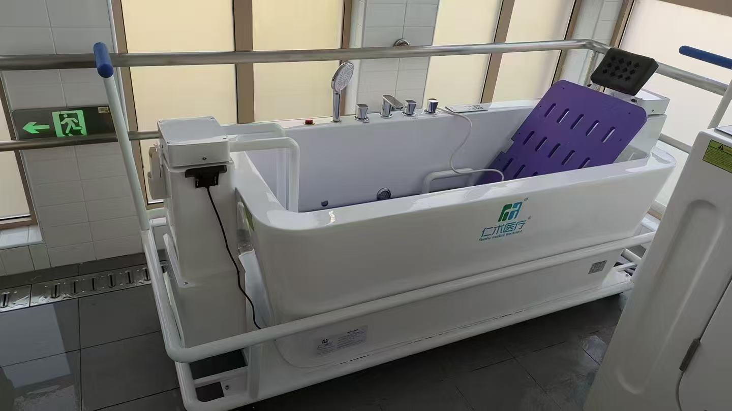 RH-YD-006無障礙平移浴槽,2300×800×1050 mm亞克力一體成型無甲醛死角,1700×800×440 mm缸體550 L大水量。平移式臥板500 mm靜音升降、任意停,防滑多氣孔托起全身,輪椅直接平移入浴。12組120孔氣泡三檔按摩+32點七彩LED光療,花灑+瀑布雙路注水,50 mm快排。按鍵面板、臭氧消毒<0.01 mg/m³,水電分離雙漏保,220 V/700 W低耗,CE認