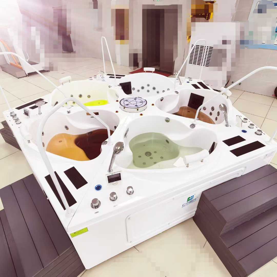 五行渦流氣泡康復(fù)池運(yùn)用木、火、土、金、水的原理設(shè)計(jì),可根據(jù)醫(yī)生對(duì)患者的診療,辨證應(yīng)用中藥作為水療的水劑,結(jié)合多點(diǎn)氣泡、渦流流水、音樂(lè)的綜合作用,可使一臺(tái)設(shè)備同時(shí)多種功效作用于患者,節(jié)省了時(shí)間和人力,取得更好的臨床療效。