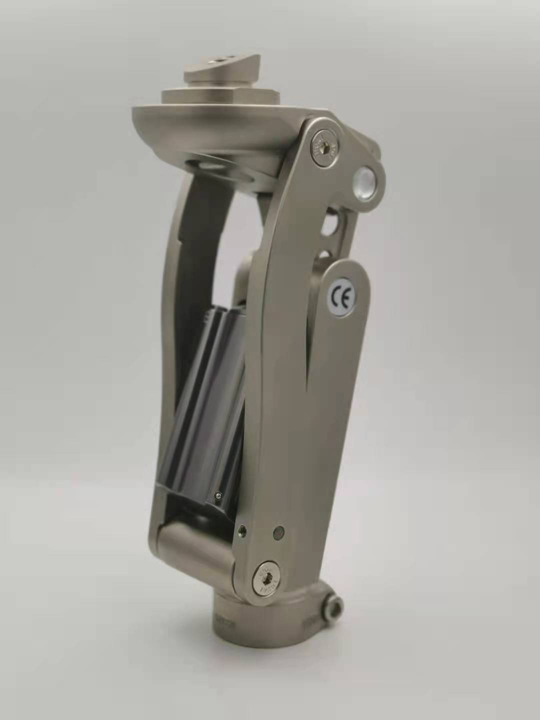 幾何鎖結(jié)構(gòu)確保在支撐期時(shí)膝關(guān)節(jié)處于安全鎖定狀態(tài),膝關(guān)節(jié) 過渡到行走期時(shí),幾何鎖自動解鎖;獨(dú)立大氣壓缸設(shè)計(jì)調(diào)整范圍更大,控制能力更強(qiáng)