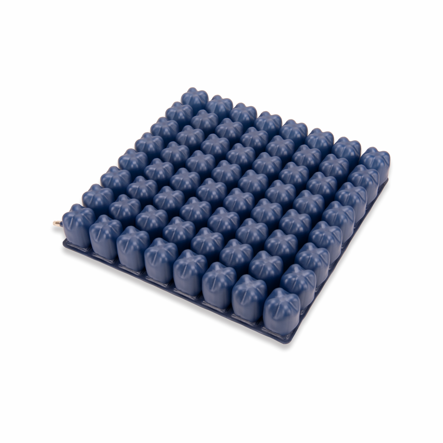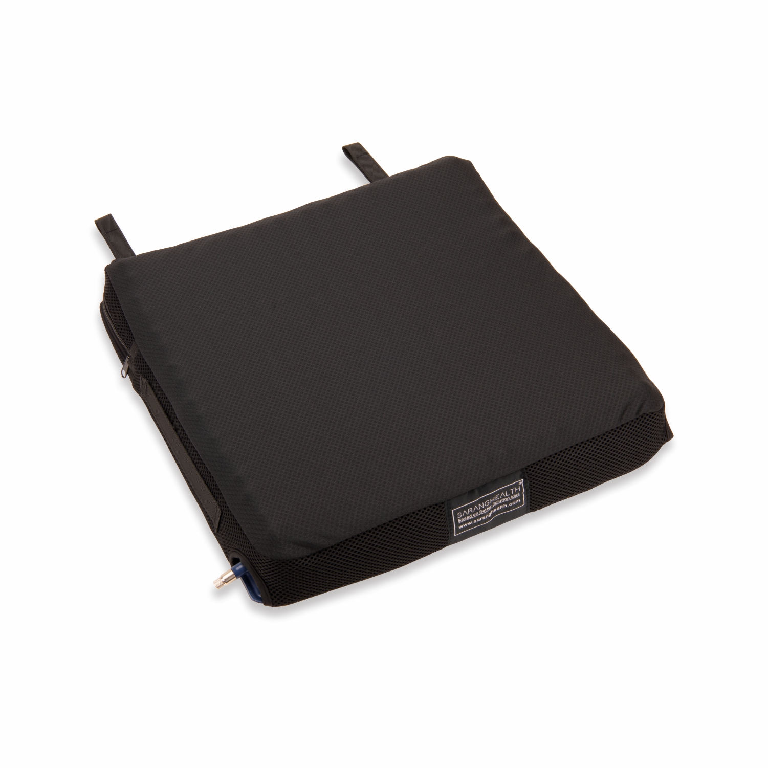 充氣坐墊采用環(huán)保PVC氣囊,內(nèi)置獨立氣囊,氣囊相互連通,易充氣和調(diào)節(jié),依據(jù)空氣流通卸壓原理,能有效預(yù)防壓瘡。左、右獨立氣室的雙氣嘴設(shè)置,不同的截癱患者左右臀部肌肉收縮程度的高低不同,可通過左、右氣嘴調(diào)節(jié)左、右獨立氣室內(nèi)的空氣量,使截癱患者得到最佳的舒適度及減壓平衡效果。坐墊套面層采用透氣滌綸面料,底部PVC防滑革,拉鏈設(shè)置易于清洗。多種尺寸、高度,適合不同輪椅使用者的需求。