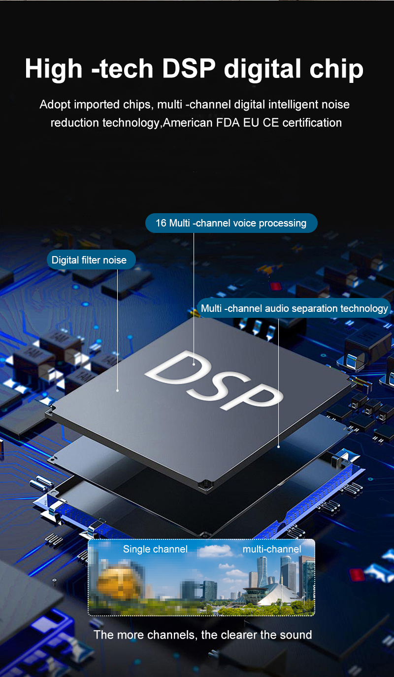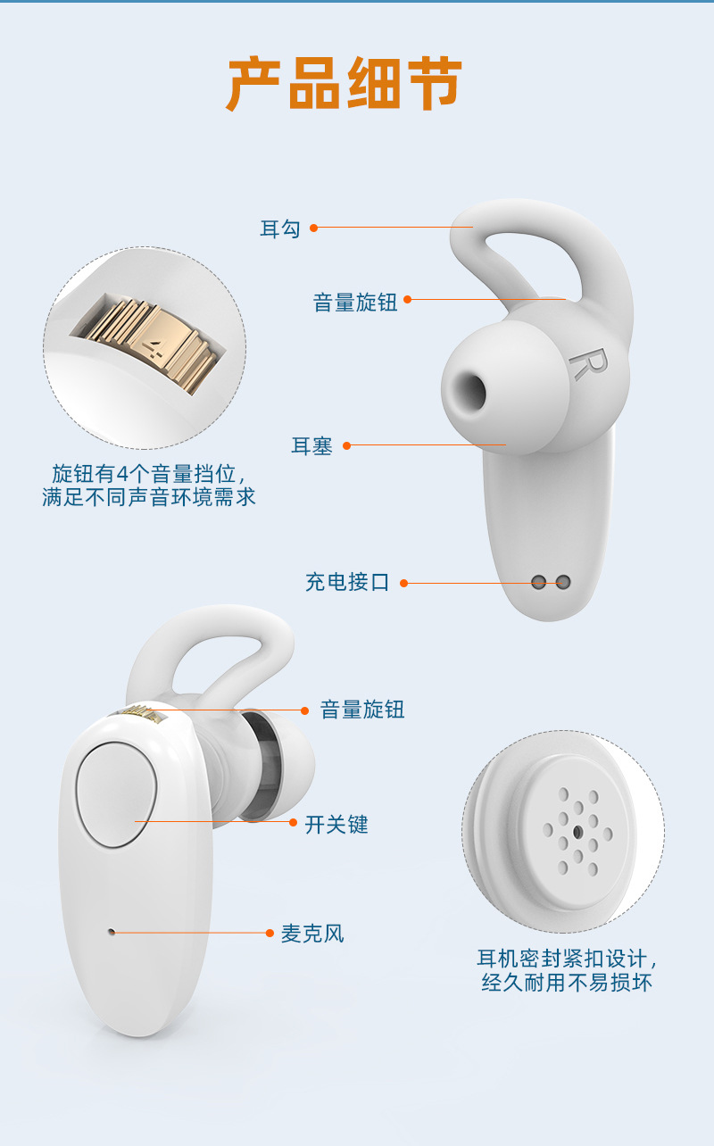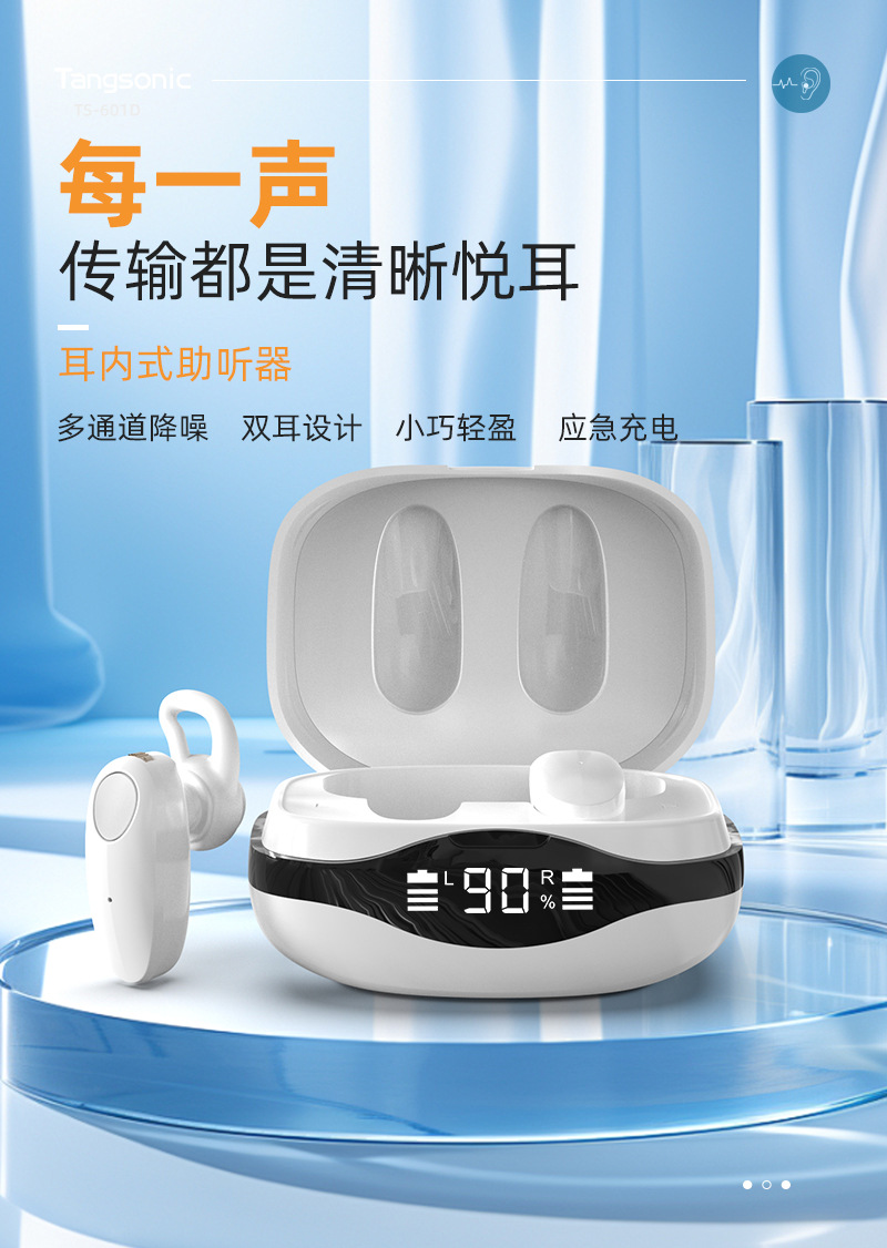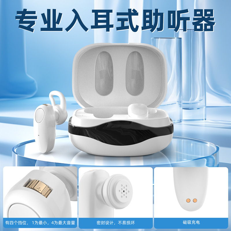 耳內(nèi)式數(shù)字助聽器 DSP數(shù)字芯片 多通道調(diào)節(jié),多生活場景清晰聆聽 磁吸充電 入耳式設(shè)計,佩戴舒適