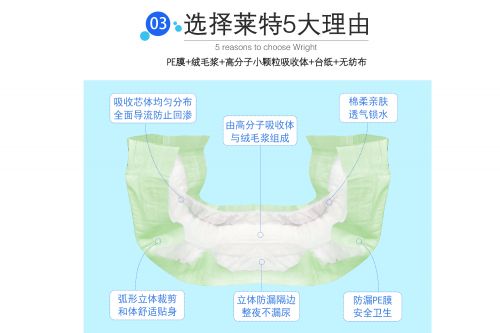 優(yōu)勢:雙層立體防漏護圍、U型立體褲邊、尿顯提示功能、布紋腰能多次粘貼、更超薄鎖水反復吸收、價格適中、異味分子祛味鎖水 適用人群:產(chǎn)婦、經(jīng)期婦女、醫(yī)院手術(shù)、嬰幼期長期臥床病人、失禁患者