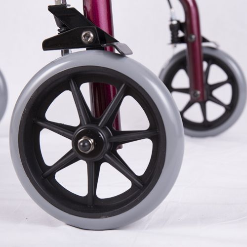 產(chǎn)品采用高強度鋁合金材質(zhì),支撐力強,堅固輕便。設(shè)計符合人體工學(xué)原理,手感舒適。握把手駐雙剎,使用更安全。握把調(diào)節(jié)處采用三角形旋鈕設(shè)計,更加穩(wěn)定,不費力。海綿握把,久握不累,舒適,防滑,抗震。鋁合金主題結(jié)構(gòu)鏈接支撐,更加穩(wěn)定。前輪裝置為優(yōu)質(zhì)萬向輪,360度可旋轉(zhuǎn)車軸。后輪裝置多功能剎車,固定式剎車和手動式剎車。舒適坐墊,便攜靠背。