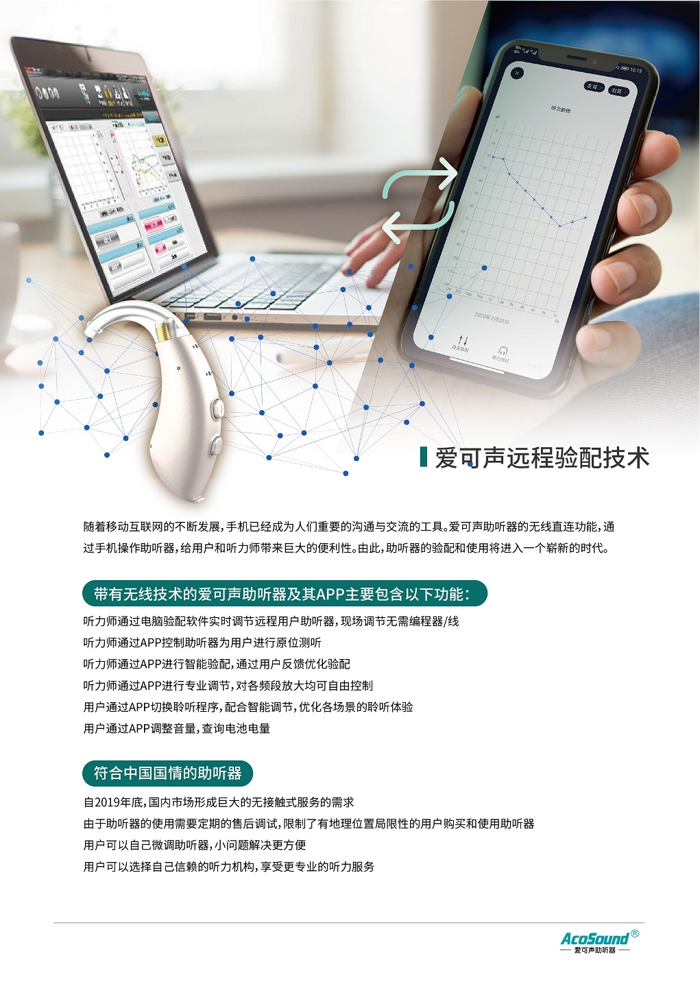 驗配師遠程實時調(diào)試用戶助聽器,提升用戶在日常生活中的聆聽體驗 精準(zhǔn)驗配:實時、高效 溝通無界:隨時、隨地 遠程服務(wù):省時、省力