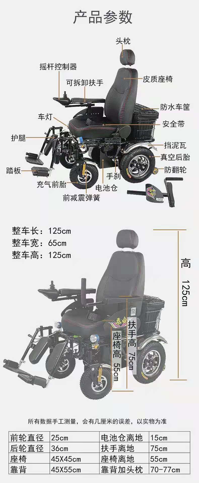 雙減速齒輪電機驅(qū)動,噪音低,動力強勁;大直徑充氣前輪,后輪鋁合金真空輪胎,兼具轉(zhuǎn)向靈活和超強越野性能;加厚豪華坐墊,透氣舒適;前后一體減震 減震性能卓越 電磁剎車斷電剎車系統(tǒng)。適應人群 意識較差、行動不便,單手有正常的抓握能力(左右手均可),活動范圍較小的用戶,尤其適合偏癱病人。適合室內(nèi)或者室外平坦或者較差硬化路面使用,可爬大坡。