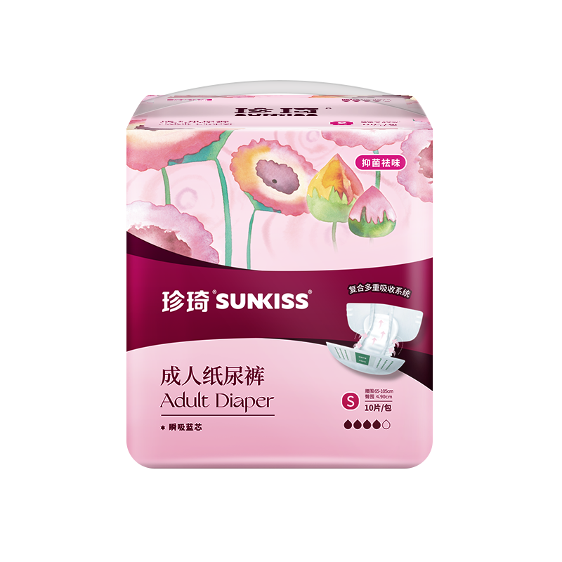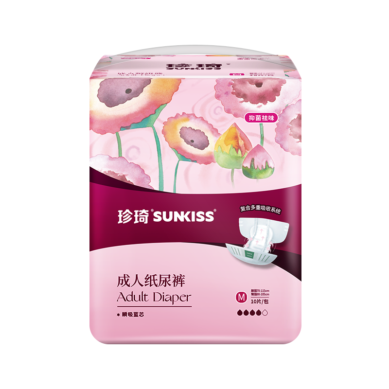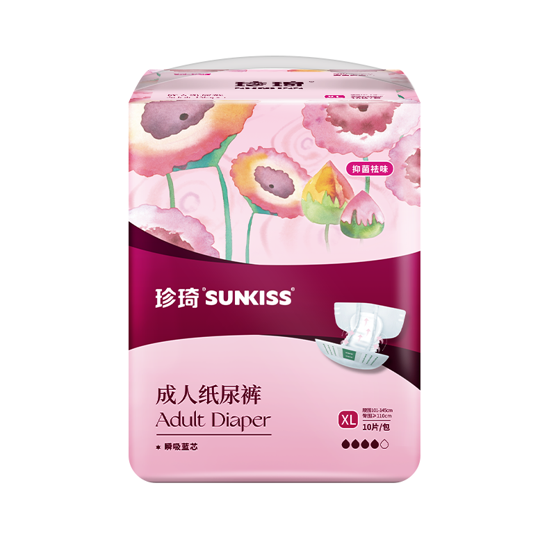 珍琦花樣倍護紙尿褲 ① 復合多重吸收系統(tǒng): 采用了“瞬吸藍芯”技術,使液體快速擴散低回滲,保持皮膚干爽舒適; ② 高效吸收芯體:進口優(yōu)質(zhì)絨毛漿搭配高鎖水性SAP,雙芯速吸,更高吸收量,更強鎖水性,干爽舒適低回滲 ③ 貼身腿部橡筋:不勒肉,無來縛,加倍防側(cè)漏保護,減少打擾病者的頻次和護理人員換洗的工作量 ④防漏PE底膜:采用全新料PE膜,防潮不悶熱,柔軟不透水,有效防止液體滲漏. 適用于臥床失禁老人