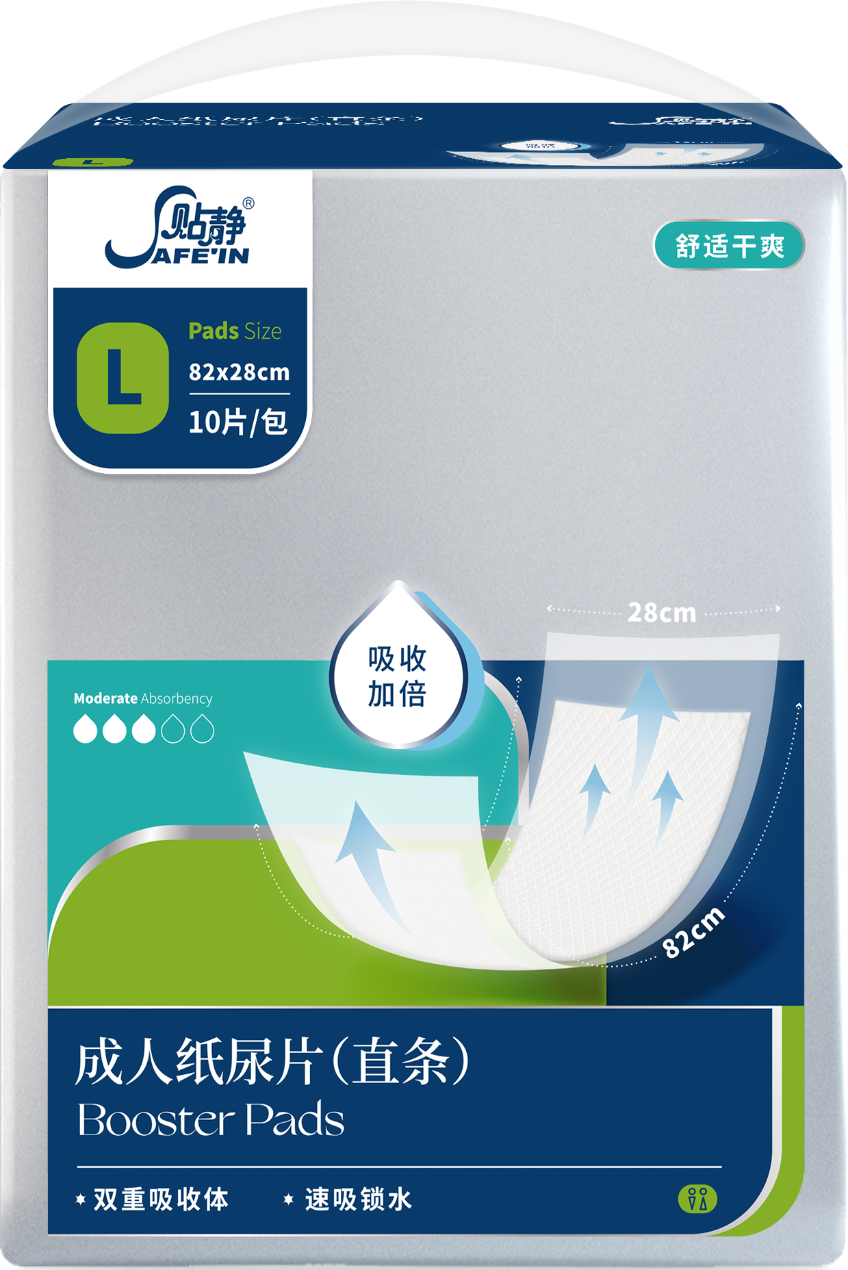 ① 舒爽瞬吸芯體:美國進口紙漿搭配高吸水SAP,瞬吸鎖水低回滲 ② 親膚柔護面層:親水無紡布面層 不起坨不拉絲,減輕肌膚負擔 干爽零觸感③ 加長易粘背膠:采用加長背膠 抗?jié)衲蜔?,貼合牢固 不易移位 ④ T型防漏護圍:觸感舒適 有效防止側(cè)漏