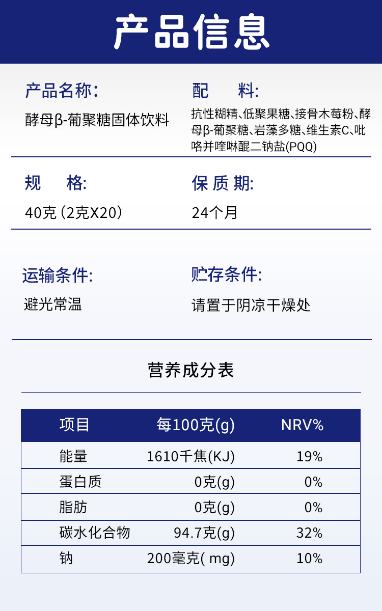 本產(chǎn)品富含酵母β-葡聚糖,它是從酵母細(xì)胞壁中提取出來的一種多糖,有益于增強(qiáng)人體免疫力,激活免疫系統(tǒng)中的巨噬細(xì)胞等免疫細(xì)胞,讓身體能更好地抵御外界病菌的侵襲,適用日常補(bǔ)充增加自護(hù)力的人群。