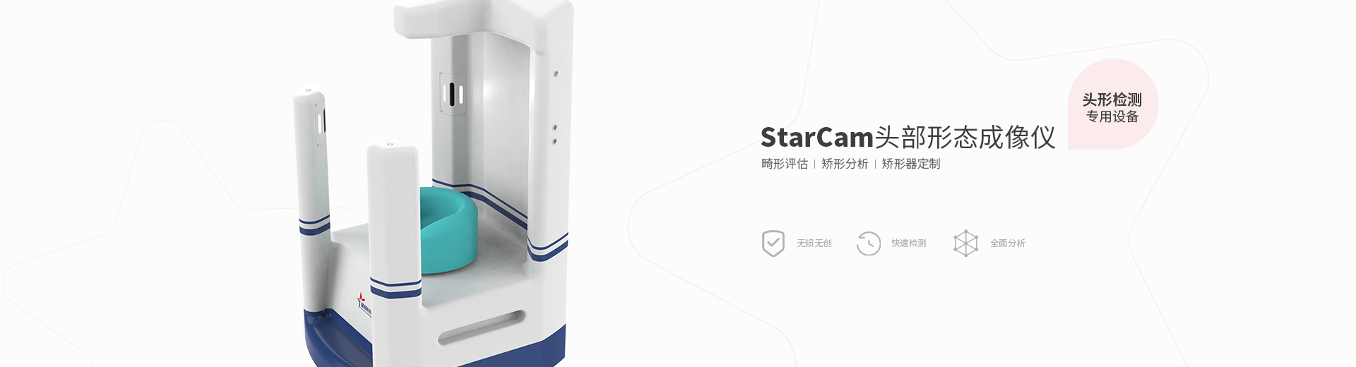1.StarCam頭部形態(tài)成像儀,精準(zhǔn)監(jiān)測(cè)嬰幼兒頭顱發(fā)育,評(píng)估畸形,提供個(gè)性化矯形分析和方案,護(hù)航寶寶健康成長。 2.本設(shè)備專用于兒童頭形的多角度觀察和檢測(cè),為無損、無創(chuàng)、快速、有效、可分析記錄的檢測(cè)設(shè)備。 3.采用高精度3D相機(jī),多維度一鍵采集用戶頭部圖像和數(shù)據(jù),并通過圖像識(shí)別、數(shù)據(jù)融合、計(jì)算機(jī)視覺算法處理,生成3D建模,獲得頭部各個(gè)層級(jí)的頭圍、長、寬等測(cè)量數(shù)據(jù),并生成分析報(bào)告。