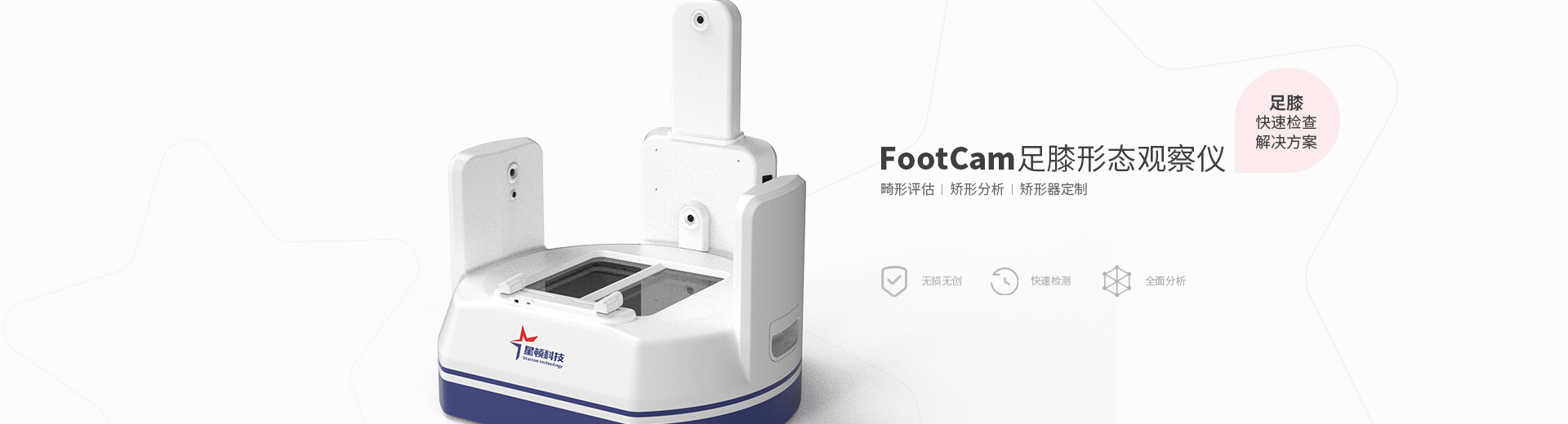 1.FootCam足膝形態(tài)觀察儀為無損、無創(chuàng),快速、有效、可存檔記錄的檢測設(shè)備。 2.用于人足底、足踝、小腿以及膝部的形態(tài)多角度觀察,快速顯示和采集2D圖像,同時(shí)具備快速掃描足底功能,生成三維模型,用于矯形鞋墊定制;可以集成采集足壓分布圖像,進(jìn)行足底壓力分析、步態(tài)分析,定制矯形器具。 3.用戶可以按需求進(jìn)行2D、3D圖像和數(shù)據(jù)的采集與測量,并提供多種圖像與數(shù)據(jù)的分析處理功能,數(shù)據(jù)檔案管理功能。