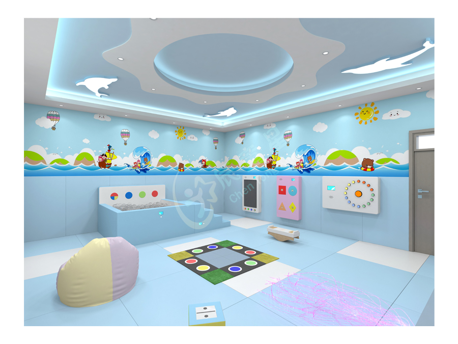 多感官訓(xùn)練室源于“史露西倫”理論,并依據(jù)神經(jīng)生理學(xué)及“蒙臺梭利感官教育”理論,強調(diào)給予有感官障礙和學(xué)習(xí)困難者一個悠閑、舒適、安全的空間環(huán)境,并為他們安排一個充滿感官刺激的環(huán)境,通過控制簡單的器材,使環(huán)境產(chǎn)生多種變化,并于活動中得到感官刺激經(jīng)驗。在訓(xùn)練過程中調(diào)動身體各個器官,全方位的激發(fā)興趣,全身心地為兒童服務(wù)。