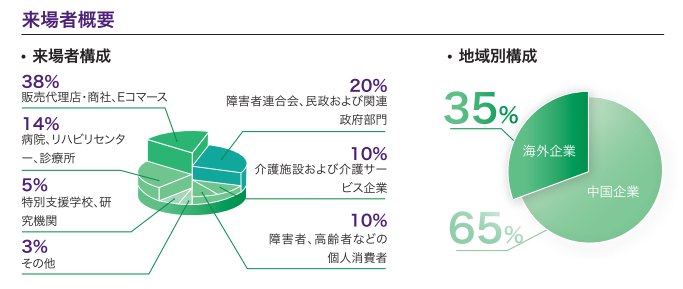 長(zhǎng)年の業(yè)界での実績(jī)を基盤に、博覧會(huì)は引き続き高品質(zhì)なバイヤーを集積しています。前回は、販売代理店、EC事業(yè)者、障害者連合會(huì)系統(tǒng)、民政系統(tǒng)、病院、リハビリテーションセンター、高齢者施設(shè)、特別支援學(xué)校などの専門観客の割合が87%を超えました。さらに展示會(huì)データによると、観客の62%が購(gòu)買を目的として來(lái)場(chǎng)しており、博覧會(huì)の効率的な商談マッチング能力を十分に実証しています。