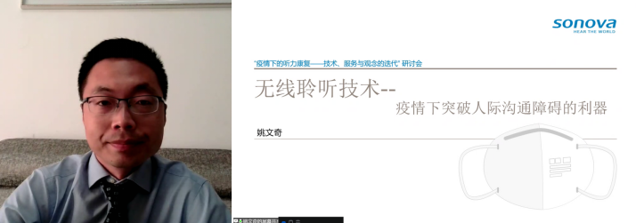 中國聾人協(xié)會信息無障礙委員會副主任、索諾瓦(Sonova)聽力全國項目技術(shù)經(jīng)理姚文奇先生為大家分享了“疫情下突破人際溝通障礙的利器——無線聆聽技術(shù)”的細(xì)節(jié)。