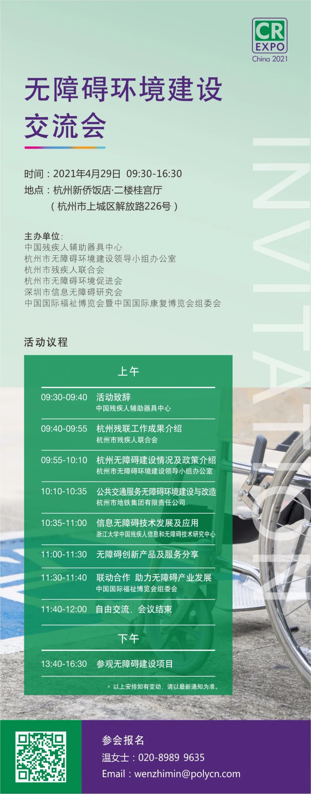 為加強(qiáng)無障礙理念的傳播,使無障礙理念轉(zhuǎn)變?yōu)橄M(fèi)需求,為無障礙領(lǐng)域相關(guān)政府部門、公共設(shè)施業(yè)主方、康復(fù)醫(yī)療機(jī)構(gòu)、養(yǎng)老服務(wù)機(jī)構(gòu)、院校機(jī)構(gòu)以及廠家企業(yè)等提供交流對(duì)接平臺(tái),中國(guó)國(guó)際福祉博覽會(huì)組委會(huì)將于2021年4月29日在杭州舉辦無障礙環(huán)境建設(shè)交流會(huì):