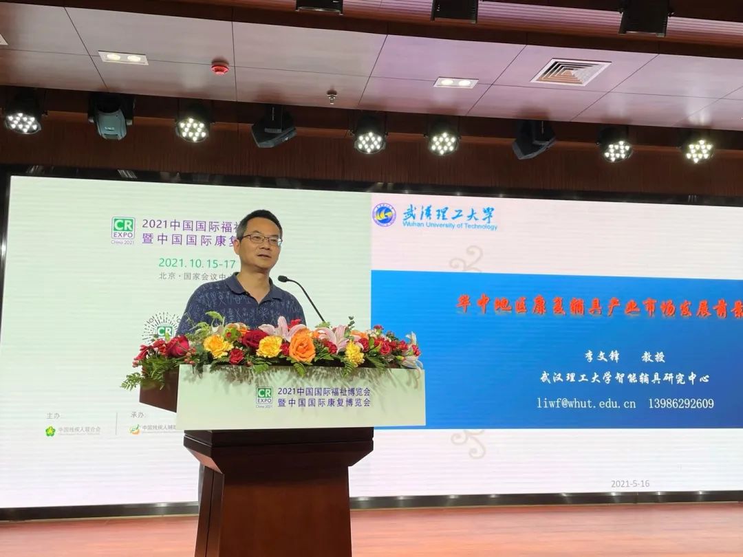 武漢理工大學(xué)智能輔具研發(fā)中心李文鋒教授作了《華中地區(qū)康復(fù)輔具產(chǎn)業(yè)市場發(fā)展前景》的主題分享,詳細(xì)介紹了華中地區(qū)輔具需求、政策環(huán)境、康復(fù)輔具發(fā)展優(yōu)勢以及政產(chǎn)學(xué)研資用等方面內(nèi)容。