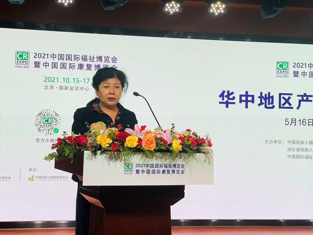 湖北省殘疾人聯(lián)合會(huì)陶慧芬理事長致歡迎辭,她表示,希望通過此次交流會(huì)可以促成企業(yè)間的合作,共同為華中區(qū)域產(chǎn)業(yè)發(fā)展注入動(dòng)力。